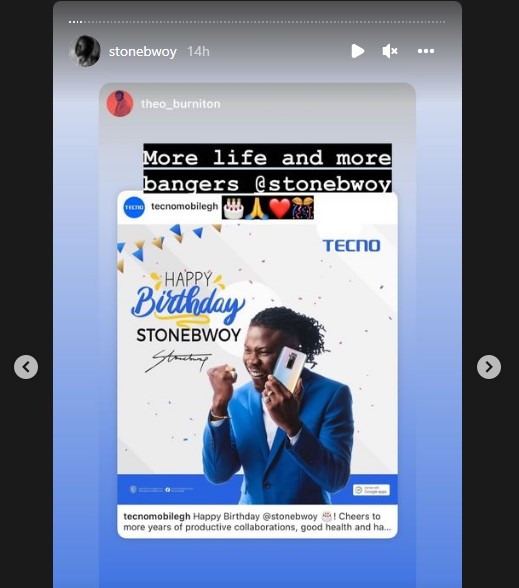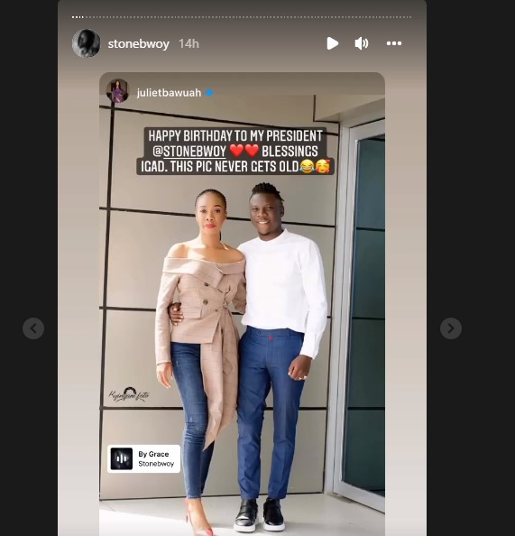 The #Bhim family birthday morning apparently began early but not as mornings do for many ordinary people . On this birthday day, Stonebwoy and and Louisa‘s are in the States with team for a show, they also involved themselves going through fans’ birthday messages, and reposting them.