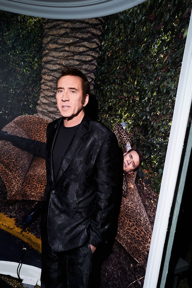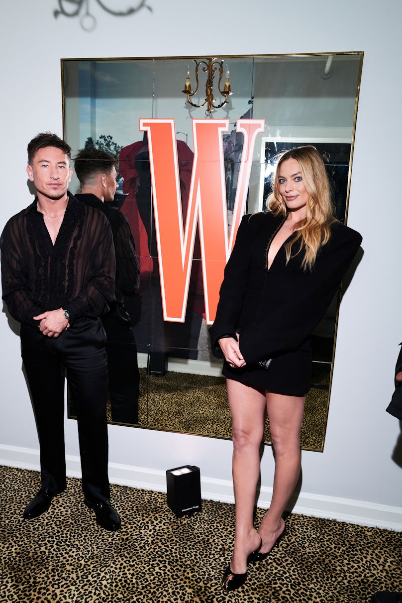 W cover stars and Golden Globe nominees Margot Robbie and Colman Domingo were among the first guests to arrive, each immediately embracing Moonves and Hirschberg and marveling at the floor-to-ceiling images of their Teller images that adorned the walls. “This is very, very cool,” Robbie said. Even cooler? The moment when Hirschberg introduced Robbie to one of her biggest fans: Nicolas Cage, who she had never met before. (“I’m a huge admirer of Margot Robbie, she’s one of my favorite actors,” he recently told Hirschberg.) The Barbie star blushed upon their introduction and expressed that the admiration was mutual.
