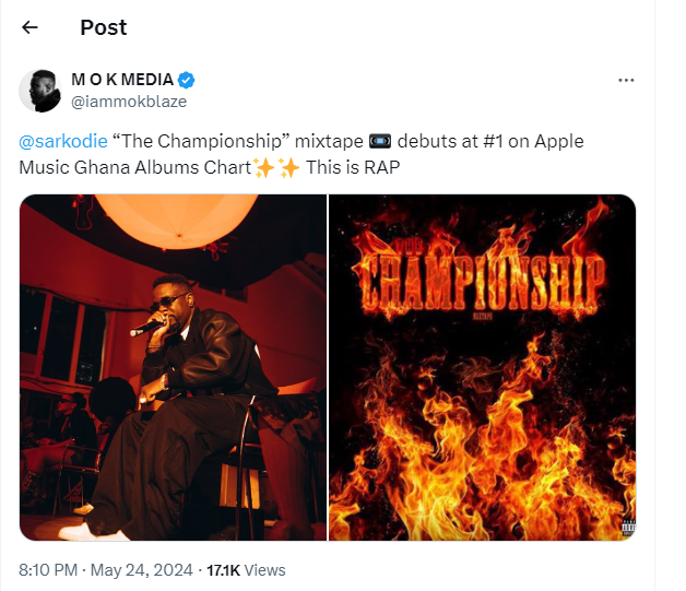 Sarkodie revealed on social media platform X that the mixtape was finished, expressing his confidence and excitement for the tracks.